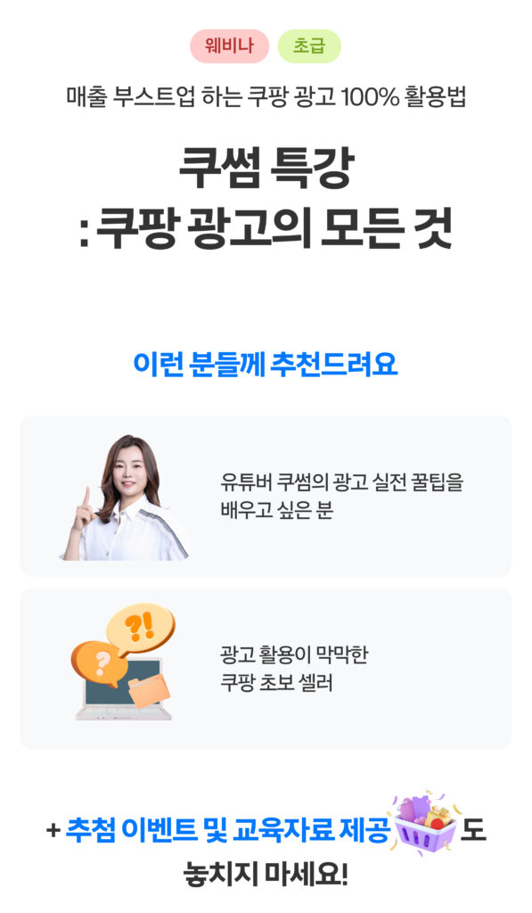 • 광고비 지원 혜택은 매월 추첨 이벤트를 통해 제공해 드리며, 교육 참석 후 출석체크 설문을 제출해 주시면 자동 참여됩니다.