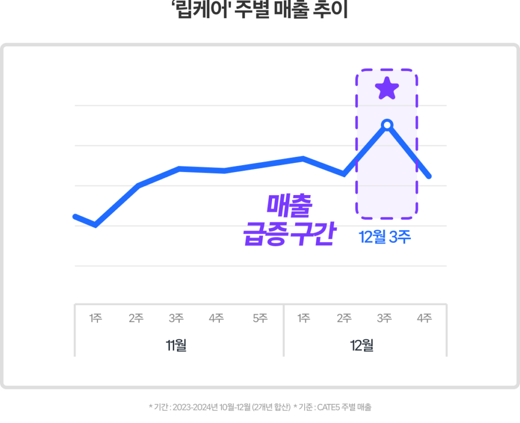특히 보습 ‘립케어’ 제품은 10~12월 사이 매출이 크게 늘며 9월 대비 12월 매출이 약 2배까지 증가했습니다.