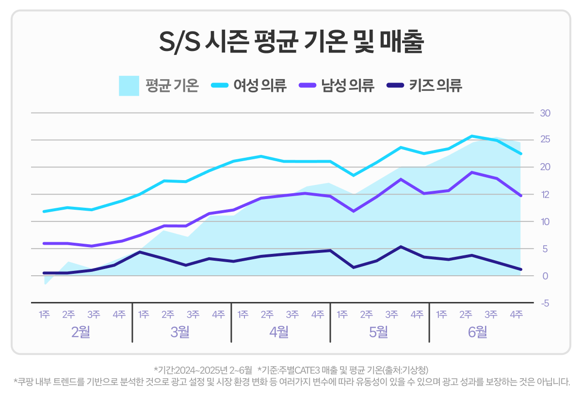 패션 의류는 기온이 오를수록 매출이 상승하는 카테고리 중 하나입니다. 이번 쿠잘템 트렌드에서는 기온별 매출 흐름과 인기 아이템을 함께 살펴보겠습니다.