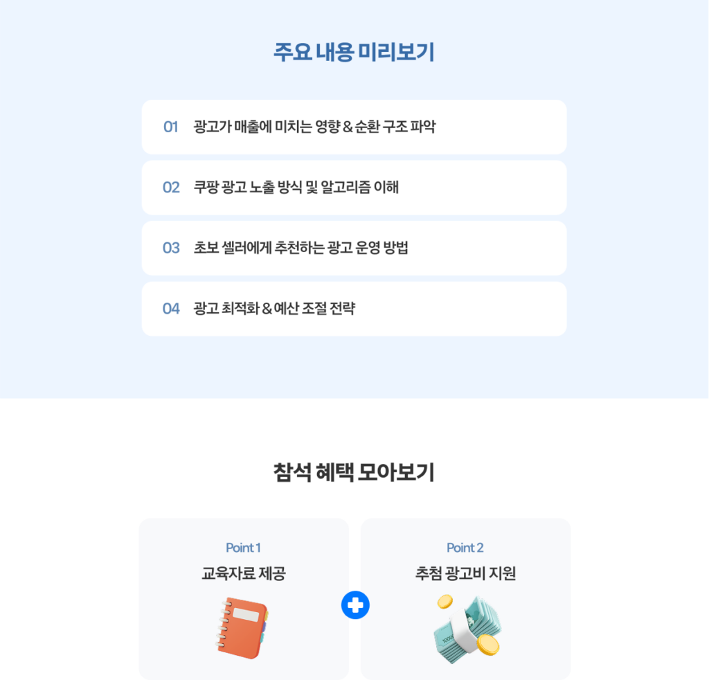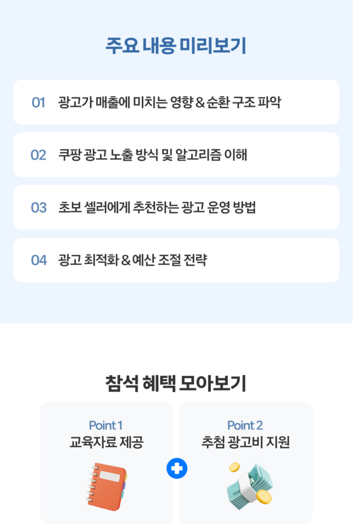 • 광고비 지원 혜택은 매월 추첨 이벤트를 통해 제공해 드리며, 교육 참석 후 출석체크 설문을 제출해 주시면 자동 참여됩니다.